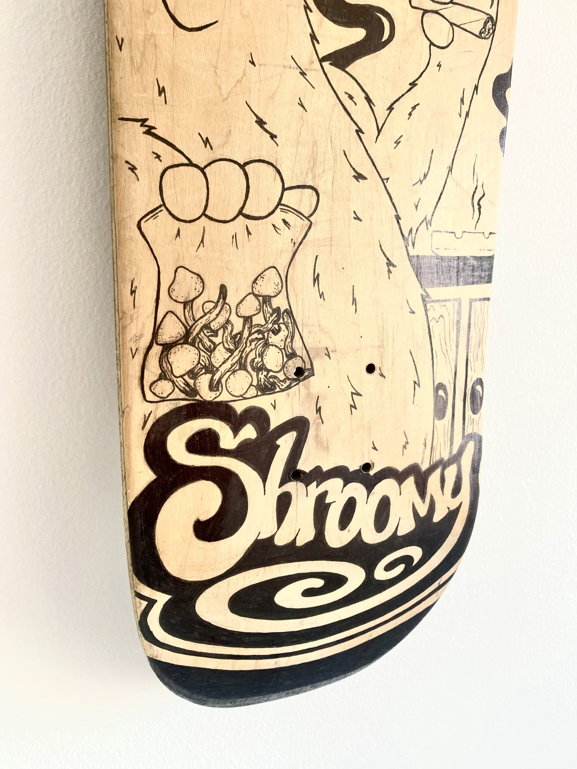 This unique hand drawn skateboard is 1 of 1 and can be shipped worldwide. Material used: Black ink pen